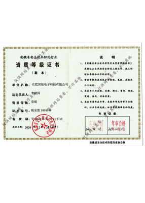 公司現已獲得承裝(修、試)電力設施許可證、電子與智能化工程專業承包壹級資質、建筑裝修裝飾工程專業承包壹級資質、消防設施工程專業承包貳級、安全技術防范行業壹級資質、雷電防護裝置檢測資質證乙級資質、安全生產許可證、通過ISO9001:2015質量管理體系認證、ISO14001:2015環境管理體系認證、OHSAS18001:2007職業健康安全管理體系認證等榮譽。我們還將進一步努力,爭取贏得更多的榮譽。